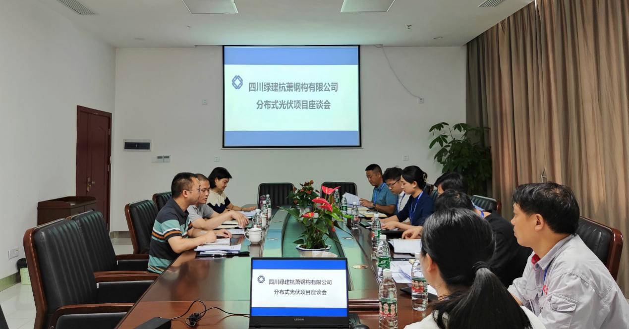 2022年6月30日上午,四川綠建杭蕭鋼構(gòu)有限公司(以下簡稱:綠建杭蕭)與四川省能源投資集團(tuán)有限責(zé)任公司相關(guān)負(fù)責(zé)人共同召開分布式光伏項(xiàng)目座談會。綠建杭蕭總經(jīng)理古敏同志攜領(lǐng)導(dǎo)班子與相關(guān)部門負(fù)責(zé)人參加會議。